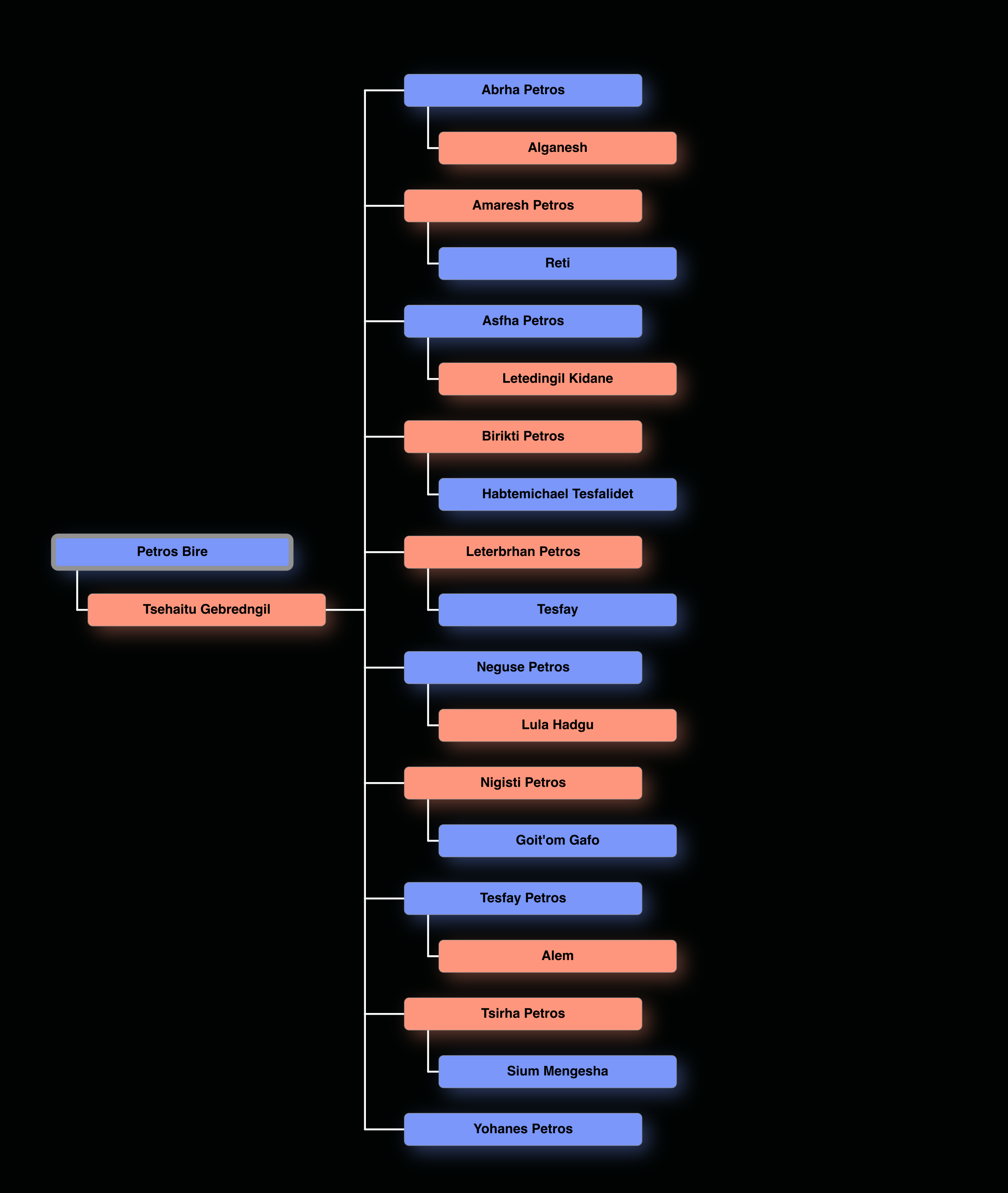 Inda Petros family originates from Keren and consists of 11 siblings living in Eritrea and Ethiopia. The grandchildren are spread across Africa, Europe, and the Americas. This website was created to help family members stay connected worldwide, allowing them to get to know each other, discuss the challenges they face, find solutions, and share the blessings of the family.